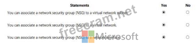 For each of the following statements, select Yes if the statement is true, Otherwise, select No.
