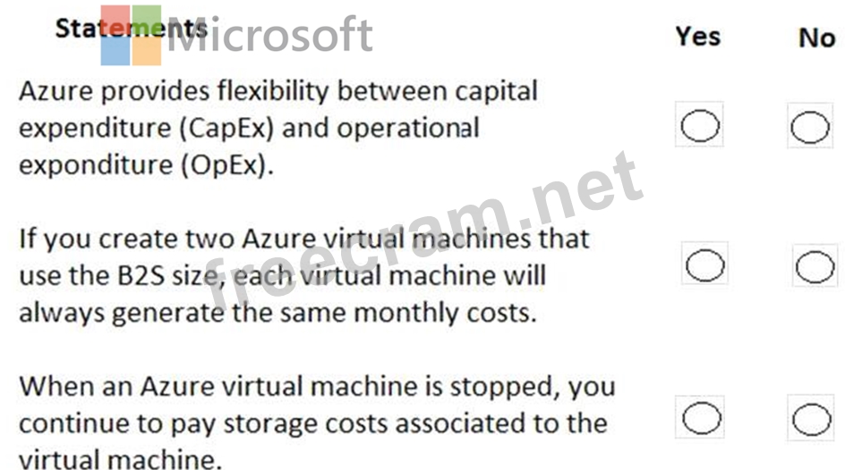 For each of the following statements, select Yes if the statement is true. Otherwise, select No.