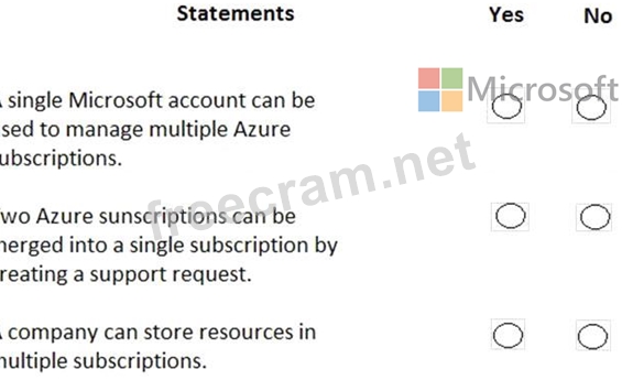 For each of the following statements, select Yes if the statement is true. Otherwise, select No.