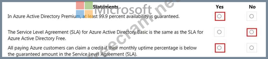 For each of the following statements, select Yes if the statement is true. Otherwise, select No.