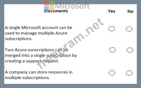 For each of the following statements, select Yes if the statement is true. Otherwise, select No.