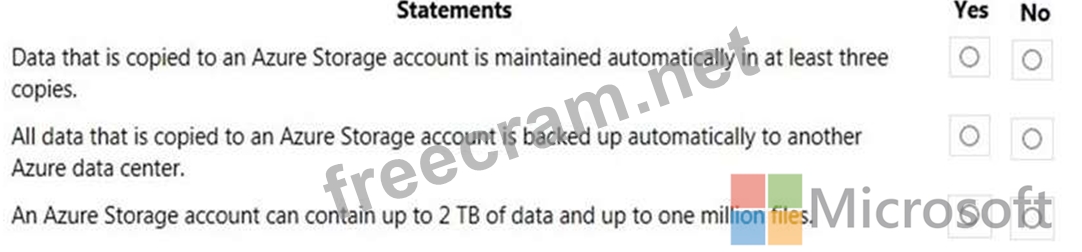 For each of the following statements, select Yes if the statement is true. Otherwise, select No.