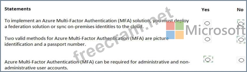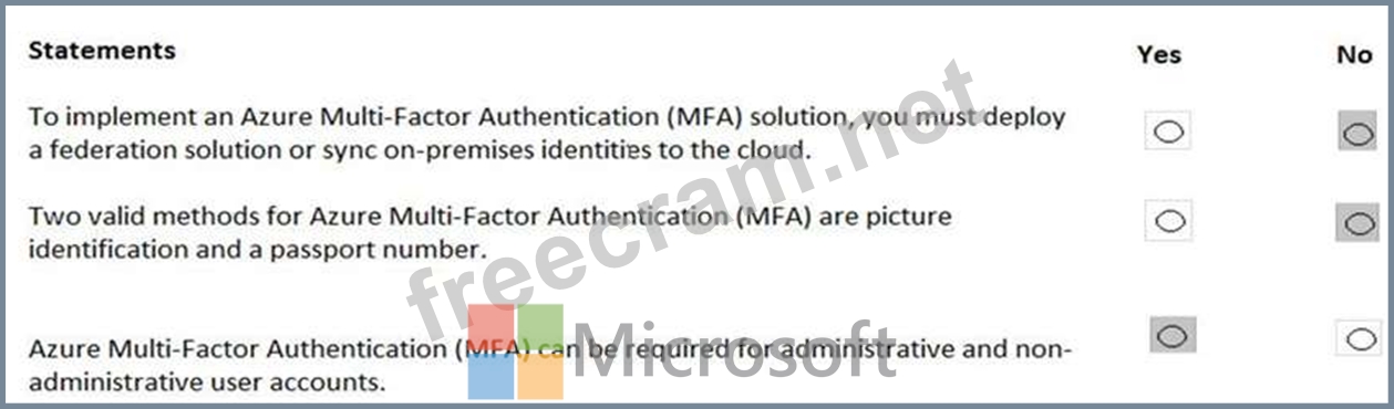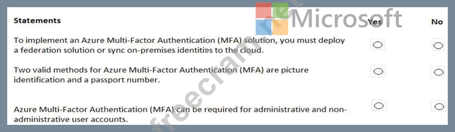 For each of the following statements, select Yes if the statement is true. Otherwise, select No.