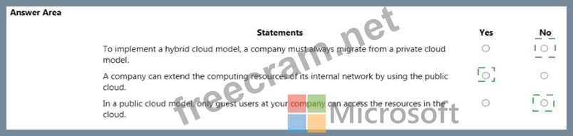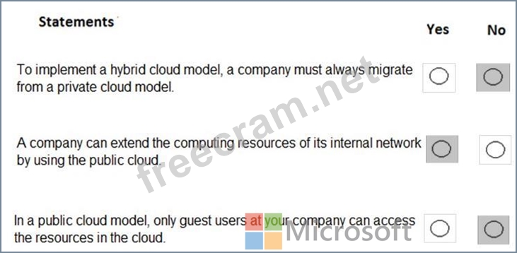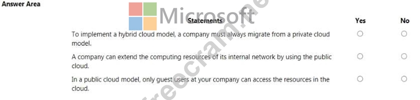 For each of the following statements, select Yes if the statement is true. Otherwise, select No. NOTE: Each correct selection is worth one point.