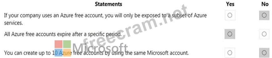 For each of the following statements, select Yes if the statement is true. Otherwise, select No.