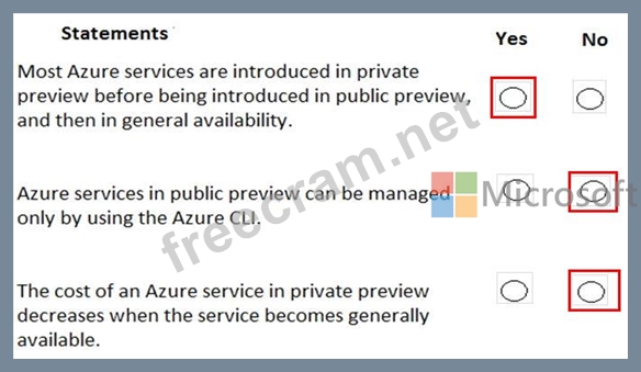 For each of the following statements, select Yes if the statement is true. Otherwise, select No.