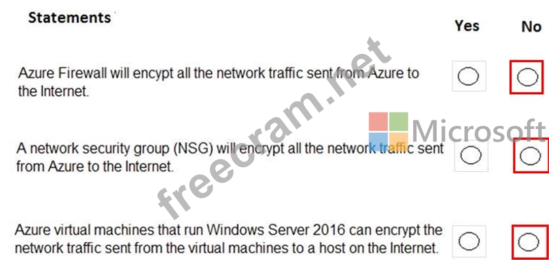 A network security group does not encrypt network traffic. It works in a similar way to a firewall in that it is used to block or allow traffic based on source/destination IP address, source/destination ports and protocol.