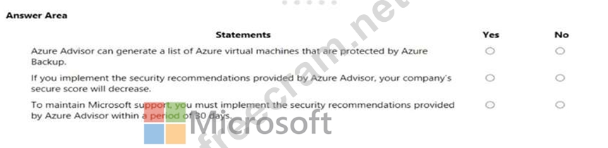 Question 217: HOTSPOT For each of the following statements, select Yes if ...