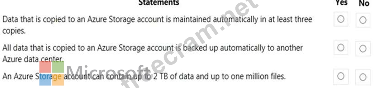 For each of the following statements, select Yes if the statement is true. Otherwise, select No.