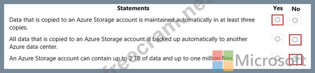 Question 57: HOTSPOT For each of the following statements, select Yes if ...