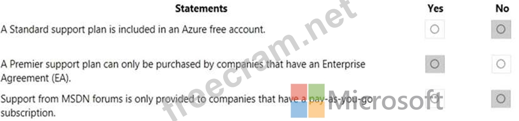 For each of the following statements, select Yes if the statement is true. Otherwise, select No. NOTE: Each correct selection is worth one point.