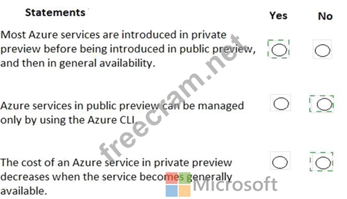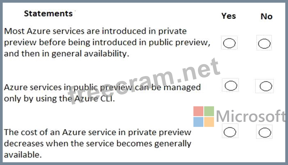 For each of the following statements, select Yes if the statement is true. Otherwise, select No.