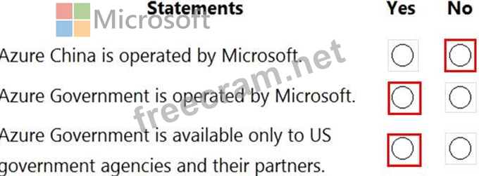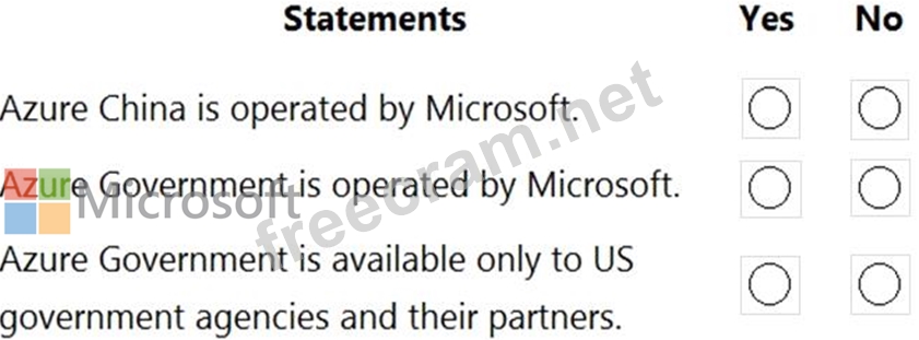 For each of the following statements, select Yes if the statement is true. Otherwise, select No.