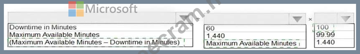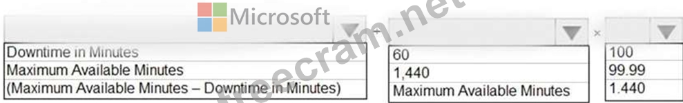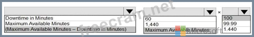How should you calculate the monthly uptime percentage? To answer, select the appropriate options in the answer area.