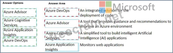 Instructions: To answer, drag the appropriate Azure service from the column on the left to its description on the right. Each service may be used once, more than once, or not at all.