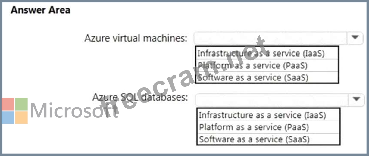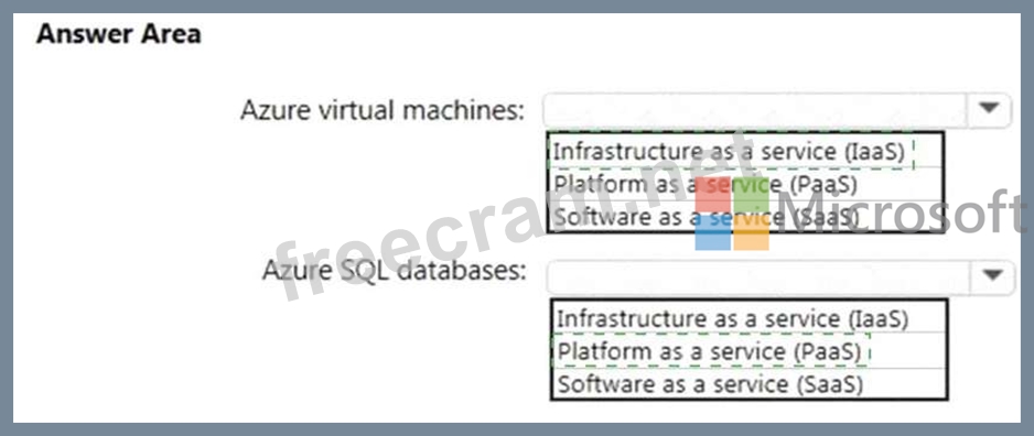 Which cloud deployment solution is used for Azure virtual machines and Azure SQL databases? To answer, select the appropriate options in the answer area.