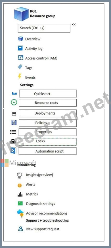 Question 170: You create a resource group named RG1 in Azure Resource Mana...