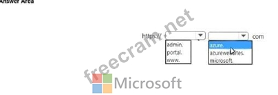 To which URL should you connect to manage all the Azure resources? To answer, select the appropriate options in the answer area.