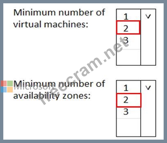 What is the minimum number of virtual machines and the minimum number of availability zones you should recommend for the deployment? To answer, select the appropriate options in the answer area.