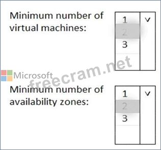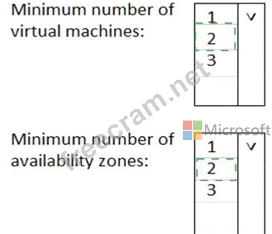 What is the minimum number of virtual machines and the minimum number of availability zones you should recommend for the deployment? To answer, select the appropriate options in the answer area.