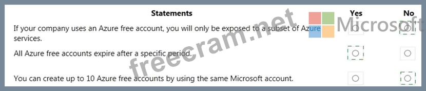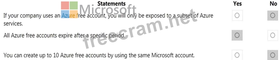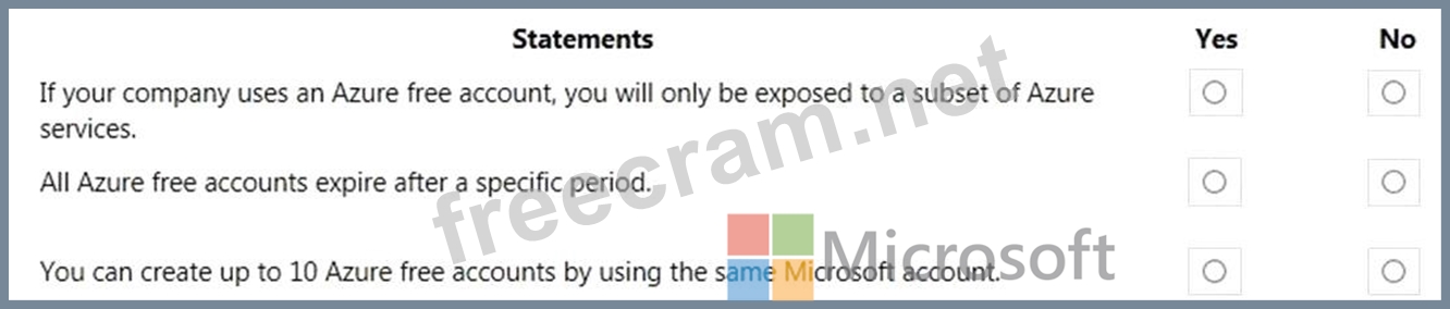 For each of the following statements, select Yes if the statement is true. Otherwise, select No.