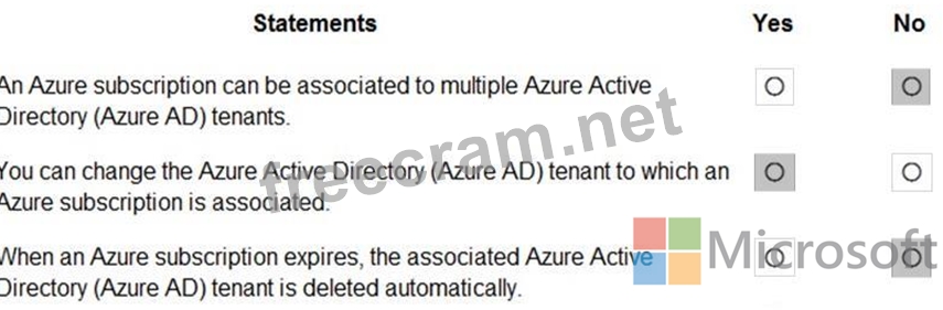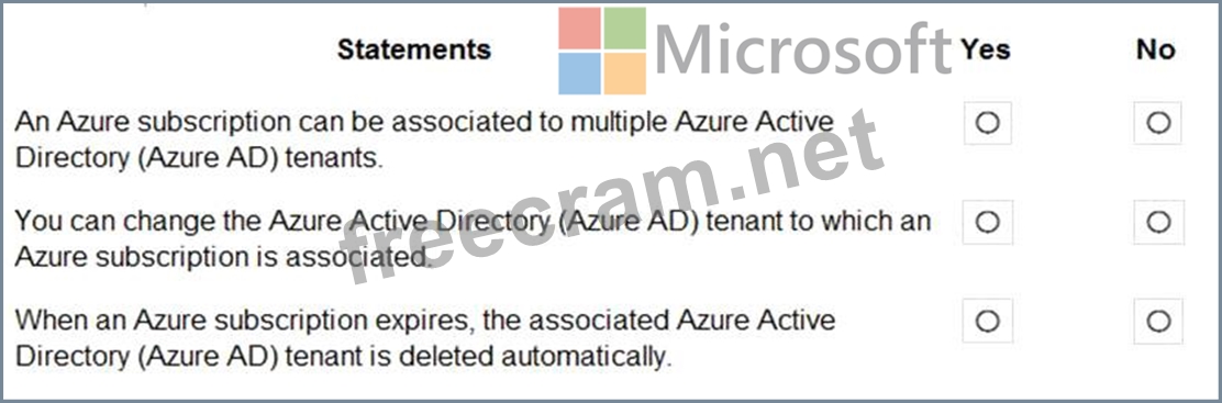 For each of the following statements, select Yes if the statement is true. Otherwise, select No.
