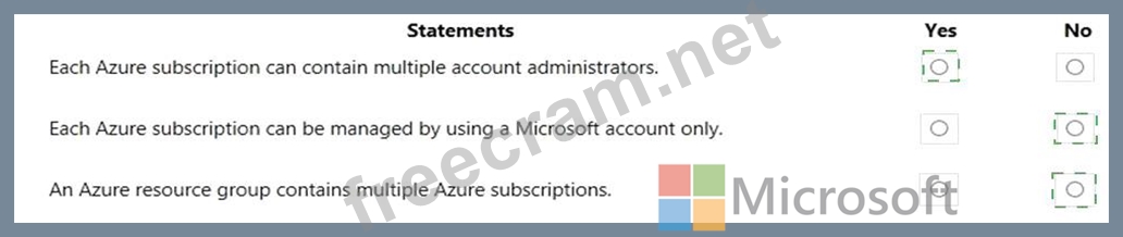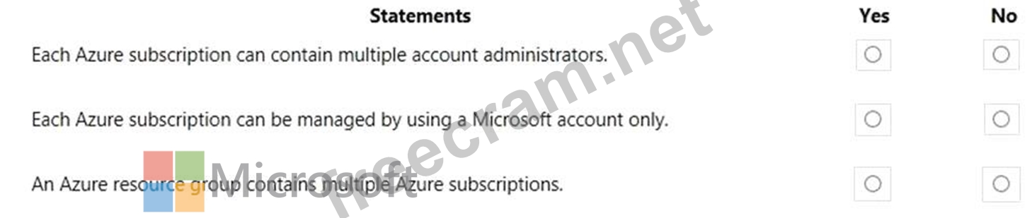 For each of the following statements, select Yes if the statement is true. Otherwise, select No.