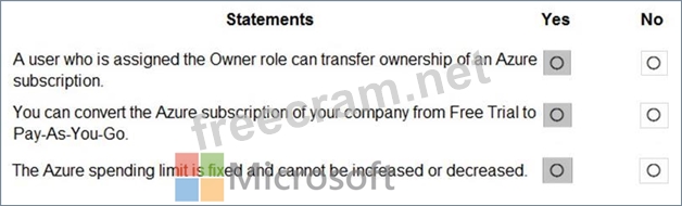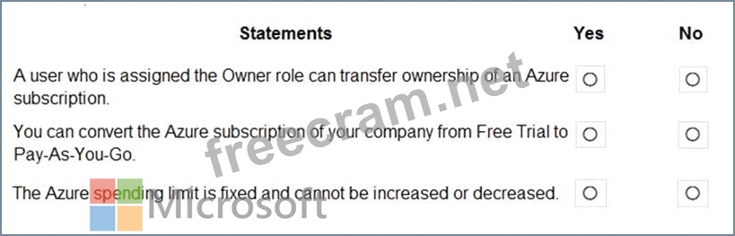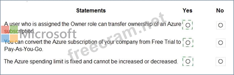 For each of the following statements, select Yes if the statement is true. Otherwise, select No.