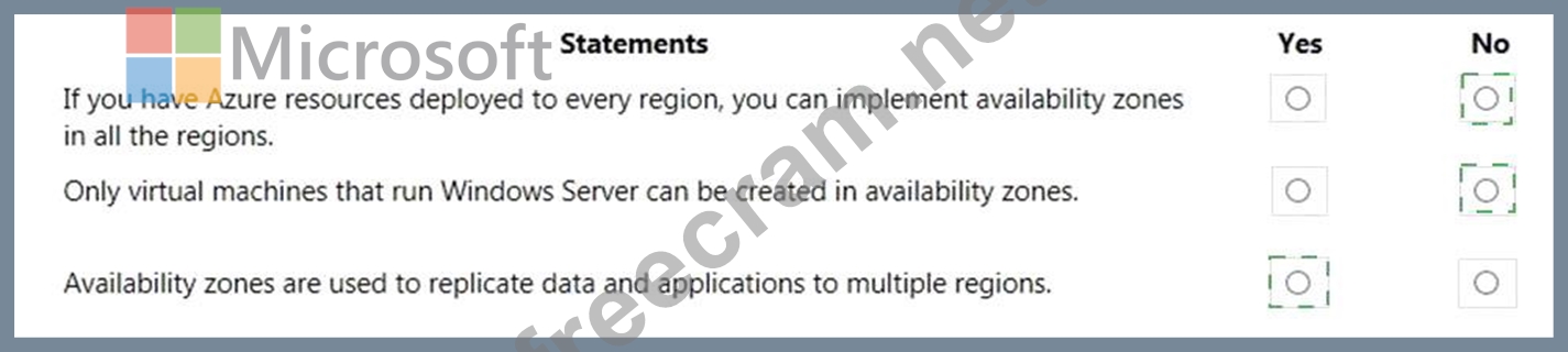 For each of the following statements, select Yes if the statement is true. Otherwise, select No.