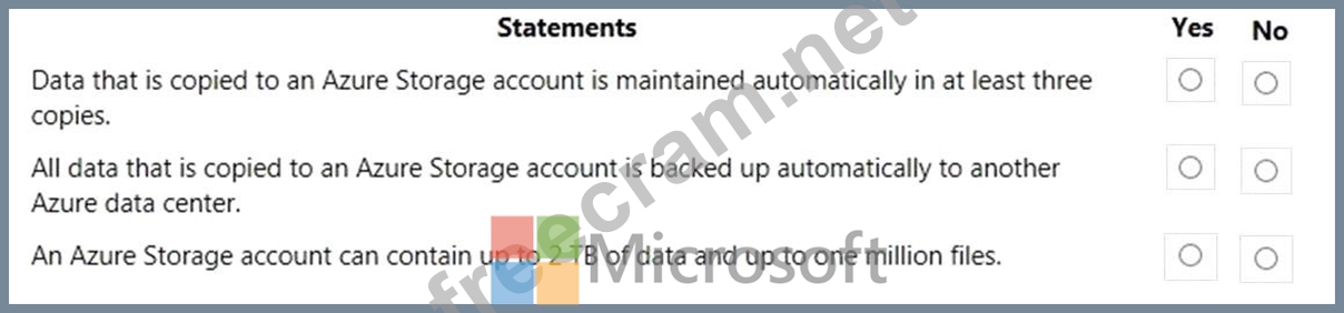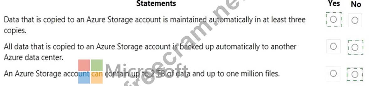 For each of the following statements, select Yes if the statement is true. Otherwise, select No.