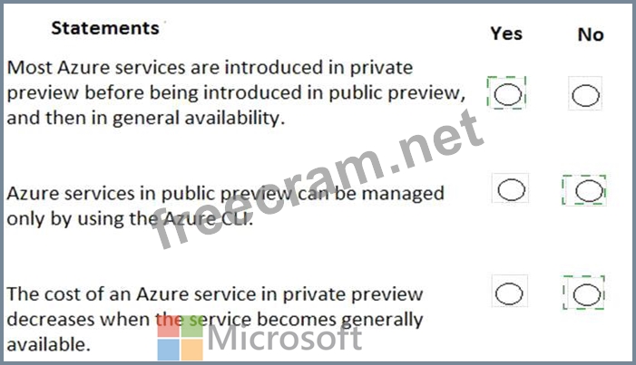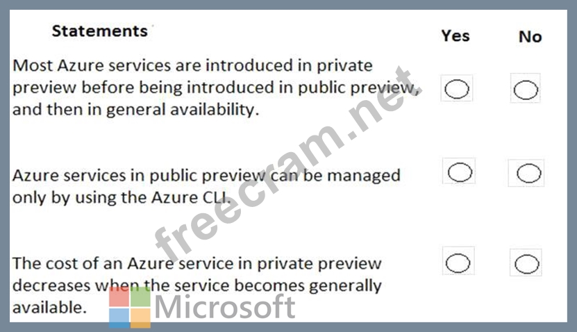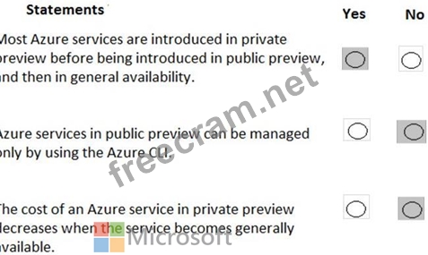 For each of the following statements, select Yes if the statement is true. Otherwise, select No.