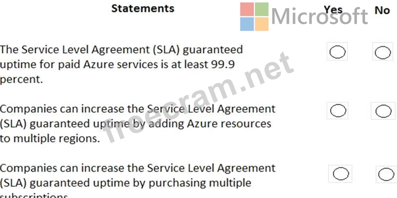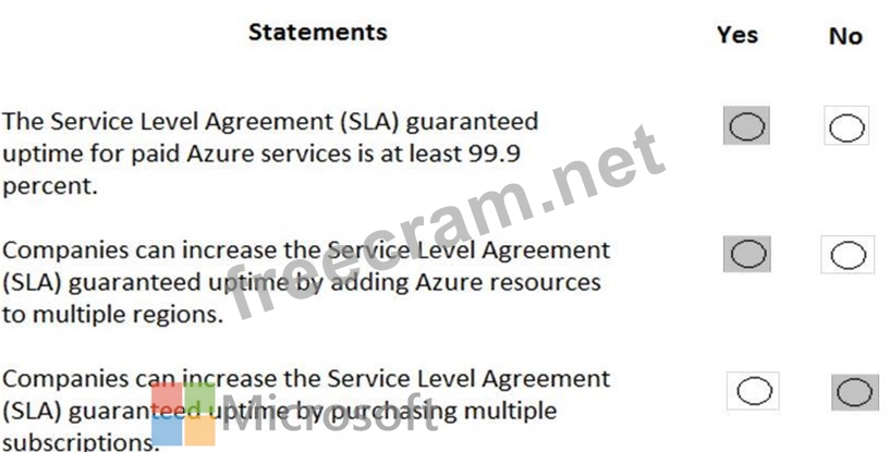 For each of the following statements, select Yes if the statement is true. Otherwise, select No.