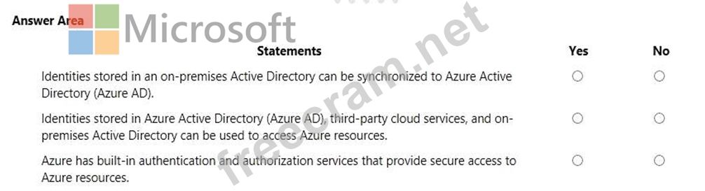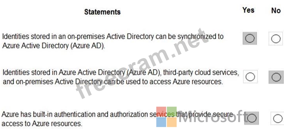 For each of the following statements, select Yes if the statement is true. Otherwise, select No. NOTE: Each correct selection is worth one point.