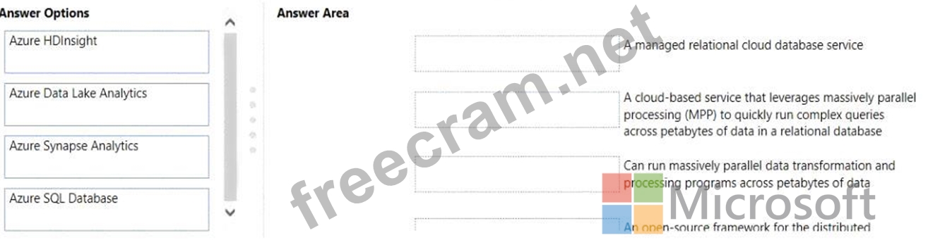 Instructions: To answer, drag the appropriate Azure service from the column on the left to its description on the right. Each service may be used once, more than once, or not at all NOTE: Each correct match is worth one point.