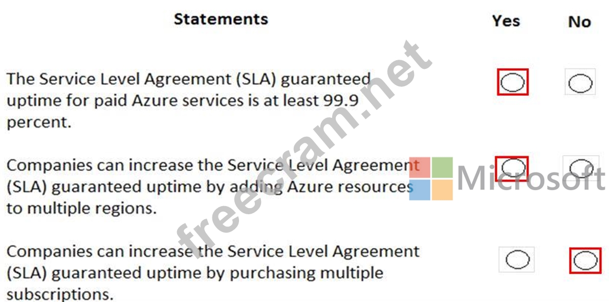 For each of the following statements, select Yes if the statement is true. Otherwise, select No.