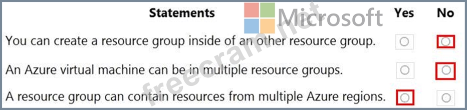 For each of the following statements, select Yes if the statement is true. Otherwise, select No.