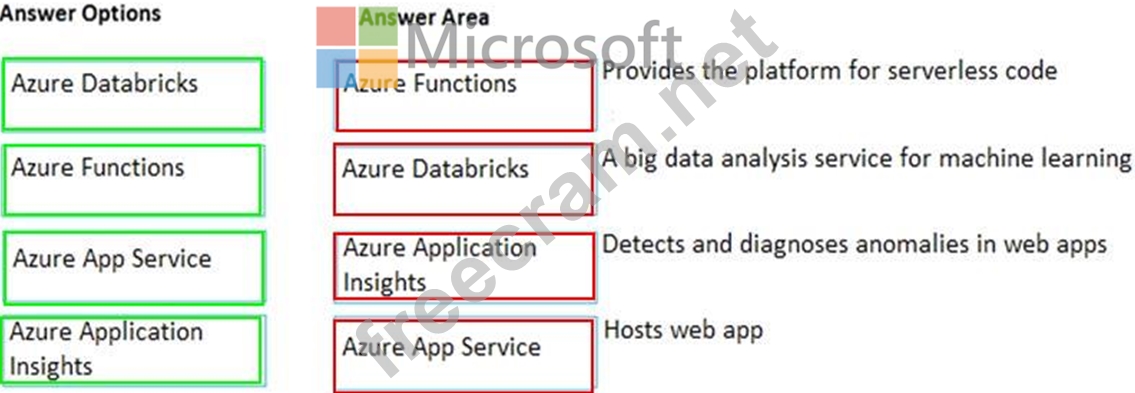 Instructions: To answer, drag the appropriate Azure service from the column on the left to its description on the right. Each service may be used once, more than once, or not at all.