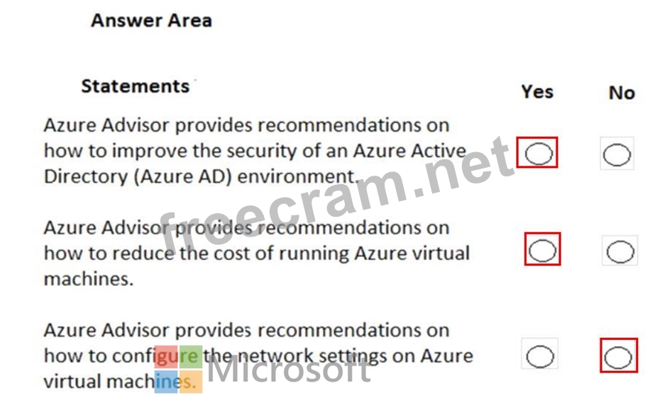 For each of the following statements, select Yes if the statement is true. Otherwise, select No. NOTE: Each correct selection is worth one point.