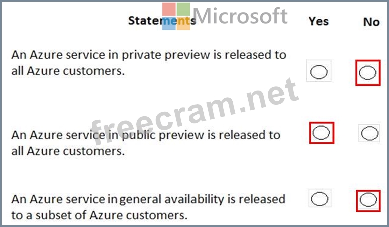 For each of the following statements, select Yes if the statement is true. Otherwise, select No.