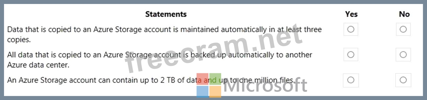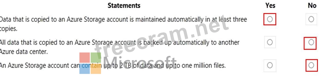 For each of the following statements, select Yes if the statement is true. Otherwise, select No.