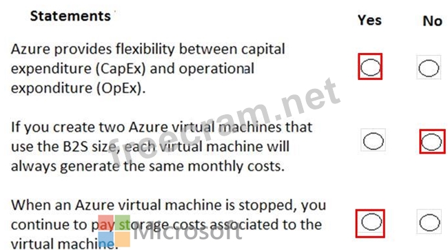 For each of the following statements, select Yes if the statement is true. Otherwise, select No.