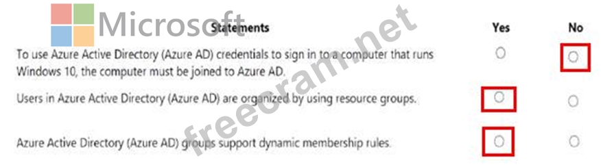 For each of the following statements, select Yes if the statement is true. Otherwise, select No.