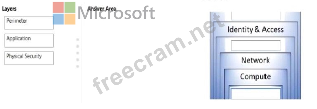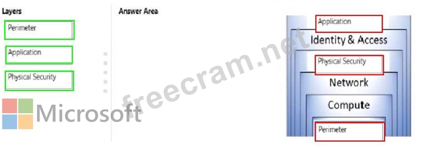 You need to complete the defense-in-depth strategy used in a datacenter, What should you do? To answer, drag the appropriate layers to the correct positions in the model. Each layer may be used once, more than once, or not at all.