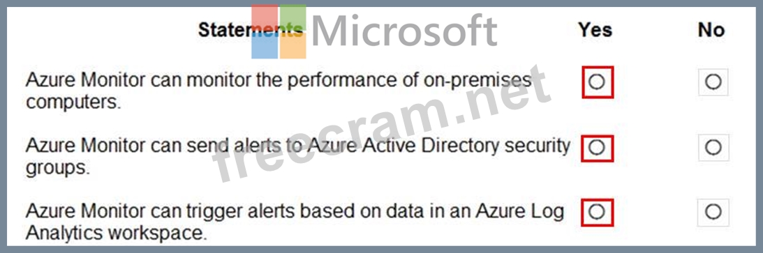 For each of the following statements, select Yes if the statement is true. Otherwise, select No.