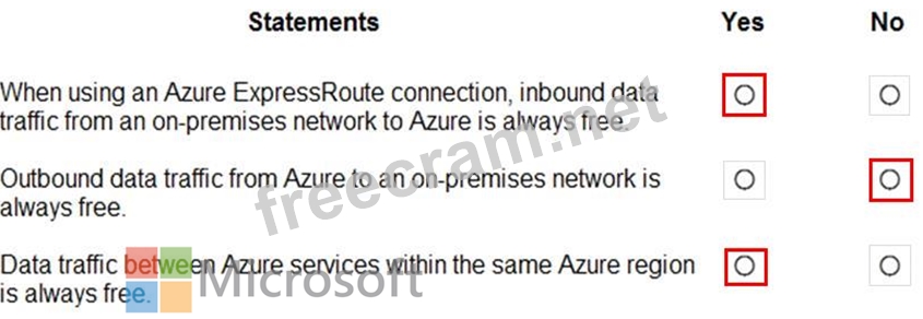 For each of the following statements, select Yes if the statement is true. Otherwise, select No.