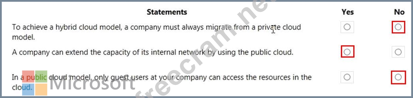 For each of the following statements, select Yes if the statement is true. Otherwise, select No.