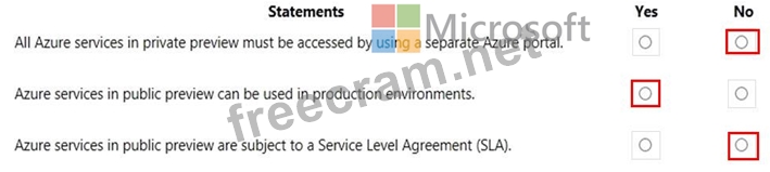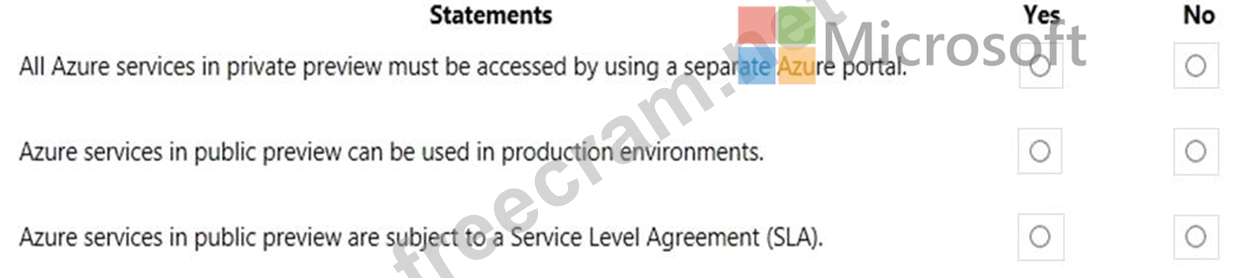 For each of the following statements, select Yes if the statement is true. Otherwise, select No.