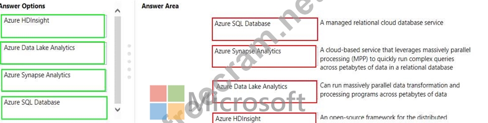Instructions: To answer, drag the appropriate Azure service from the column on the left to its description on the right. Each service may be used once, more than once, or not at all NOTE: Each correct match is worth one point.