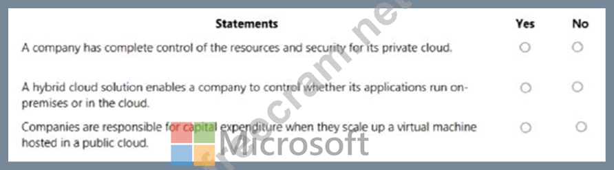 For each of the following statements, select Yes if the statement is true. Otherwise, select No.