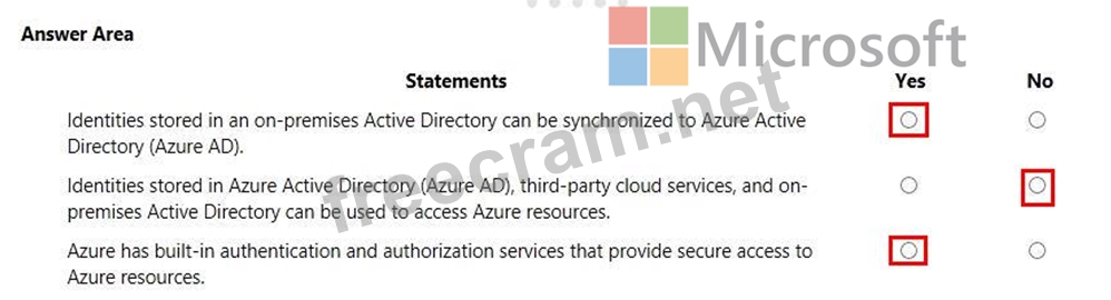 For each of the following statements, select Yes if the statement is true. Otherwise, select No. NOTE: Each correct selection is worth one point.